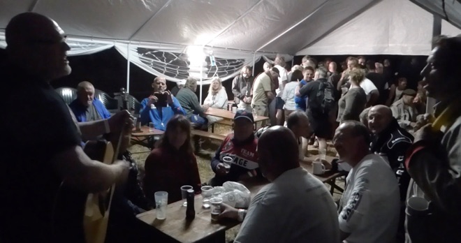 La plupart d'entre vous a quand-même apprécié le dîner et avec de la patience des deux côtés (Elefantisti et le personnel de camping) tout s'est déroulé raisonnablement bien. Puis nous avons pris une bière tranquillement dans le village de Cagiva Elefant (tente sur la prairie des chevaux), avant que tout le monde n’aille se coucher bien fatigué du long voyage.